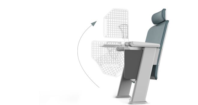 Le coussin de siège ajuste le confort en fonction de la posture et se replie automatiquement lorsque l'utilisateur se lève.