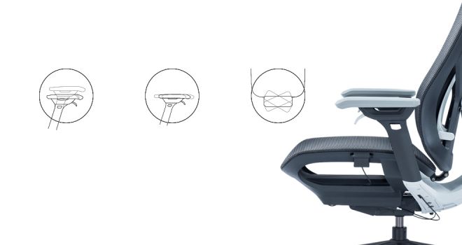 Le design s'inspire des planeurs, utilisant des lignes épurées pour souligner l'apparence, recherchant un équilibre entre structure mécanique et esthétique géométrique. La conception s'articule autour du concept de « réponse autonome ». L'inclinaison du dossier fait glisser automatiquement le siège vers l'avant, déplaçant le centre de gravité du siège vers l'avant et résolvant le danger caché de retournement de la chaise pendant les pauses déjeuner. Le mécanisme de réglage à commande filaire situé au niveau de l'accoudoir permet aux utilisateurs d'ajuster rapidement et facilement le fauteuil à un état approprié.