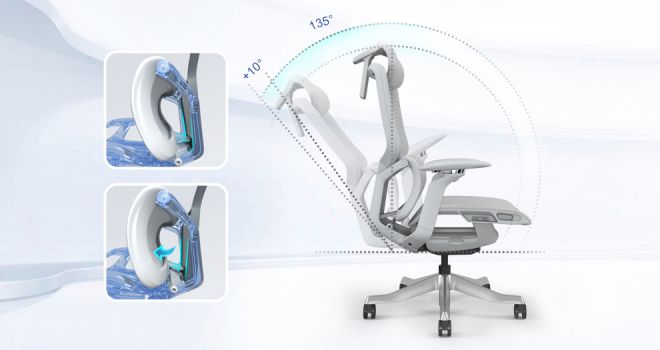 Allumage : 10° d'angle actif pour un support de balancement précis Éteindre : verrouille l'angle et rétablit une position assise droite