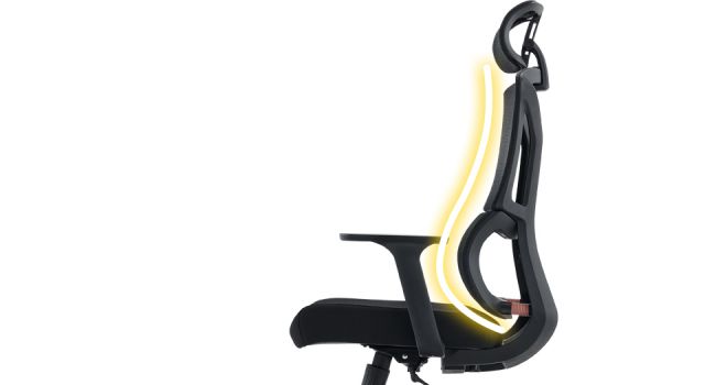 Le support lombaire dynamique s'adapte à la taille de l'utilisateur, assurant le confort des employés de bureau modernes lors d'une position assise prolongée.