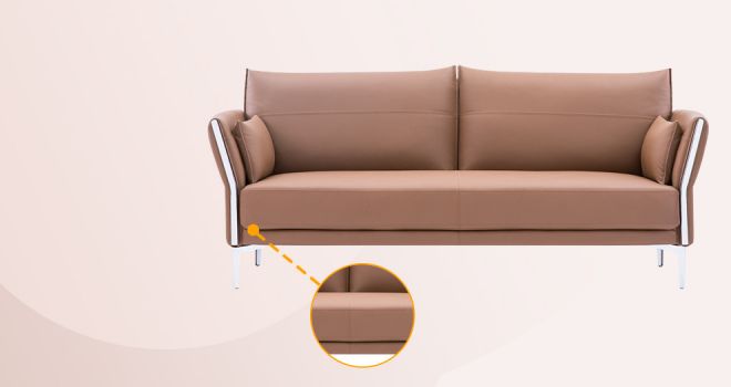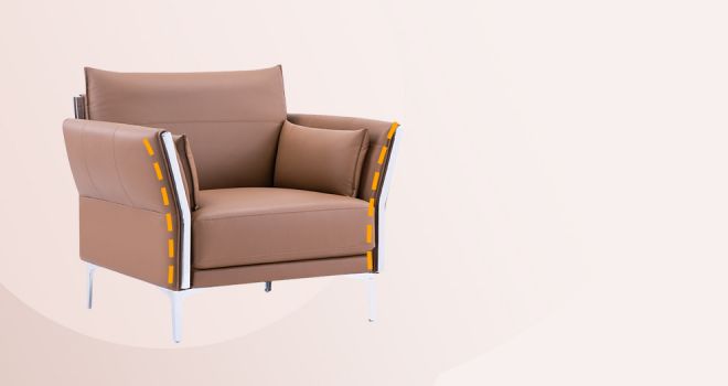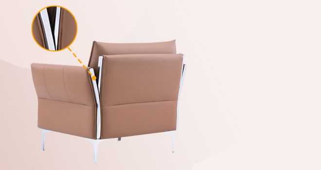 Un design d'incrustations métalliques est utilisé dans le dossier et l'accoudoir. La superposition de métal et de cuir améliore la décoration et l'aspect pratique, et peut être facilement assortie et appliquée dans plusieurs scénarios.