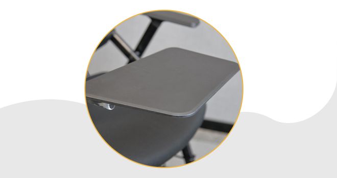 | Tablette d'écriture | Panneau PA avec plaque d'acier à l'intérieur. Rotation à 180°, support rotatif en acier massif de 16 mm | ||||