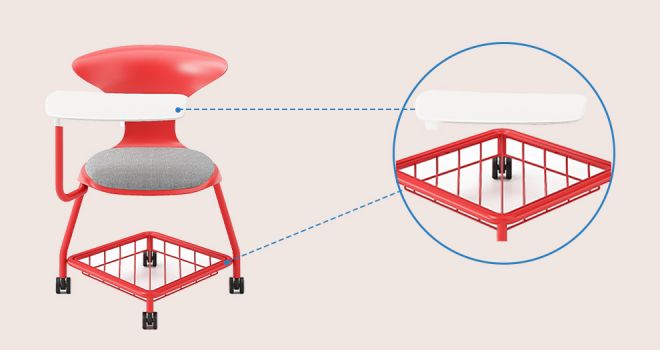 | Tablette d'écriture | Grand tableau d'écriture PA renforcé de fibres, rotatif à 40°, pouvant se déplacer de gauche à droite ; le support métallique renforcé offre une surface d'appui stable. | ||||